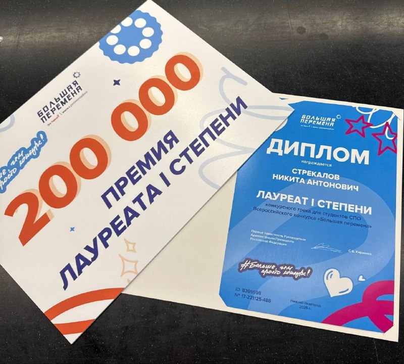 В Нижнем Новгороде прошел финал Всероссийского конкурса “Большая перемена” среди студентов СПО. Никита Стрекалов прошел длинный и тернистый путь, чтобы оказаться среди лучших из лучших, и это действительно заслуживает аплодисментов!