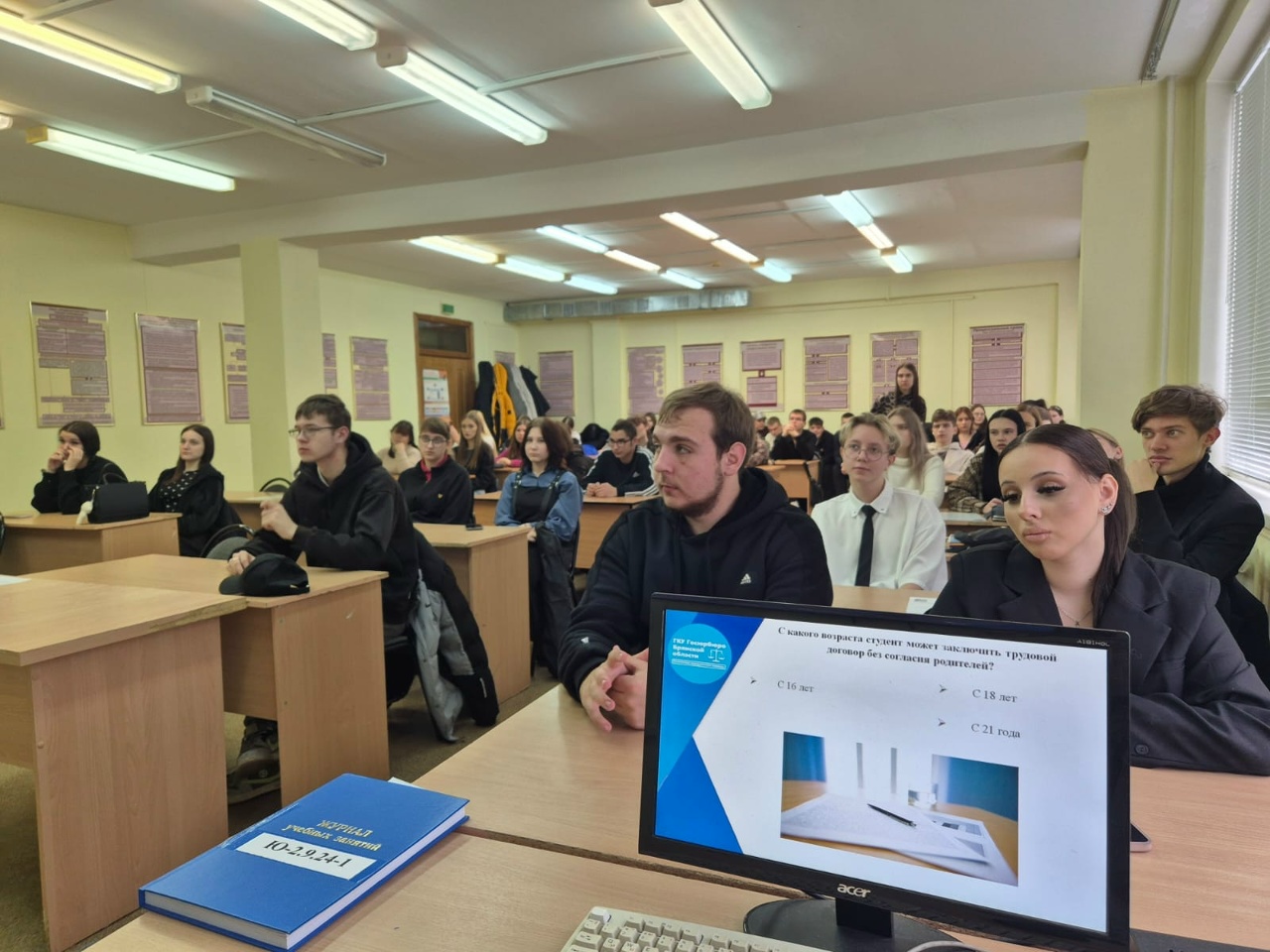30 октября 2025 года в техникуме представителем ГКУ Госюрбюро Брянской области Дожидаевой Оксаной Александровной была проведена лекция, посвящённая особеностям регулирования труда несовершеннолетних.